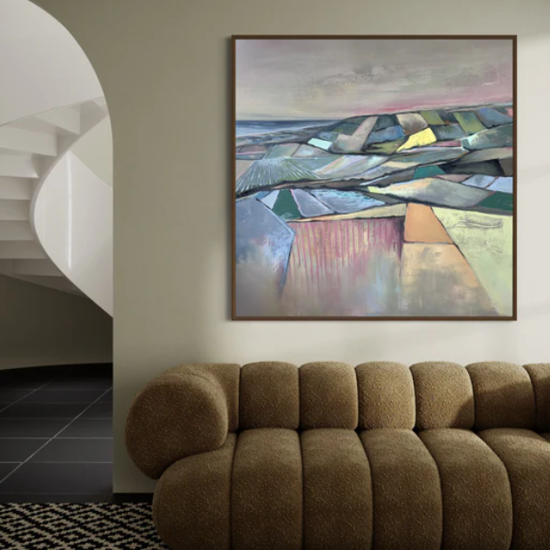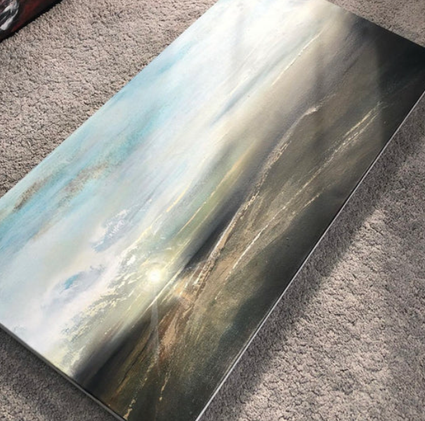I work as a full-time artist from my home studio just outside Omagh in Northern Ireland. Originally from Armagh, I came back to painting after looking for a large piece of art for my own home. I struggled to find printed canvases that felt meaningful, and original artwork was often beyond my budget. Even though I had taught art, I hadn’t painted for years. Creating my own piece reignited my love for painting, and I enjoyed it enough to hang it on my wall.