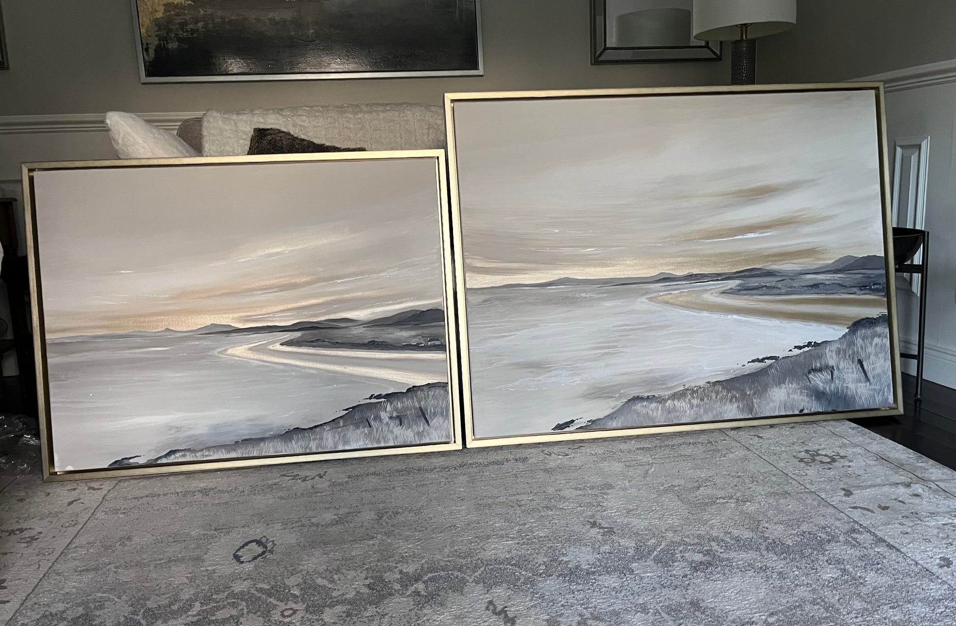 This is a scene of Portnoo in Donegal, Ireland but painted in my 'Chill Out' series vibe. It is painted with soft and delicate hues of taupes, beiges, greys and champagne gold that when the light hit, is just stunning.