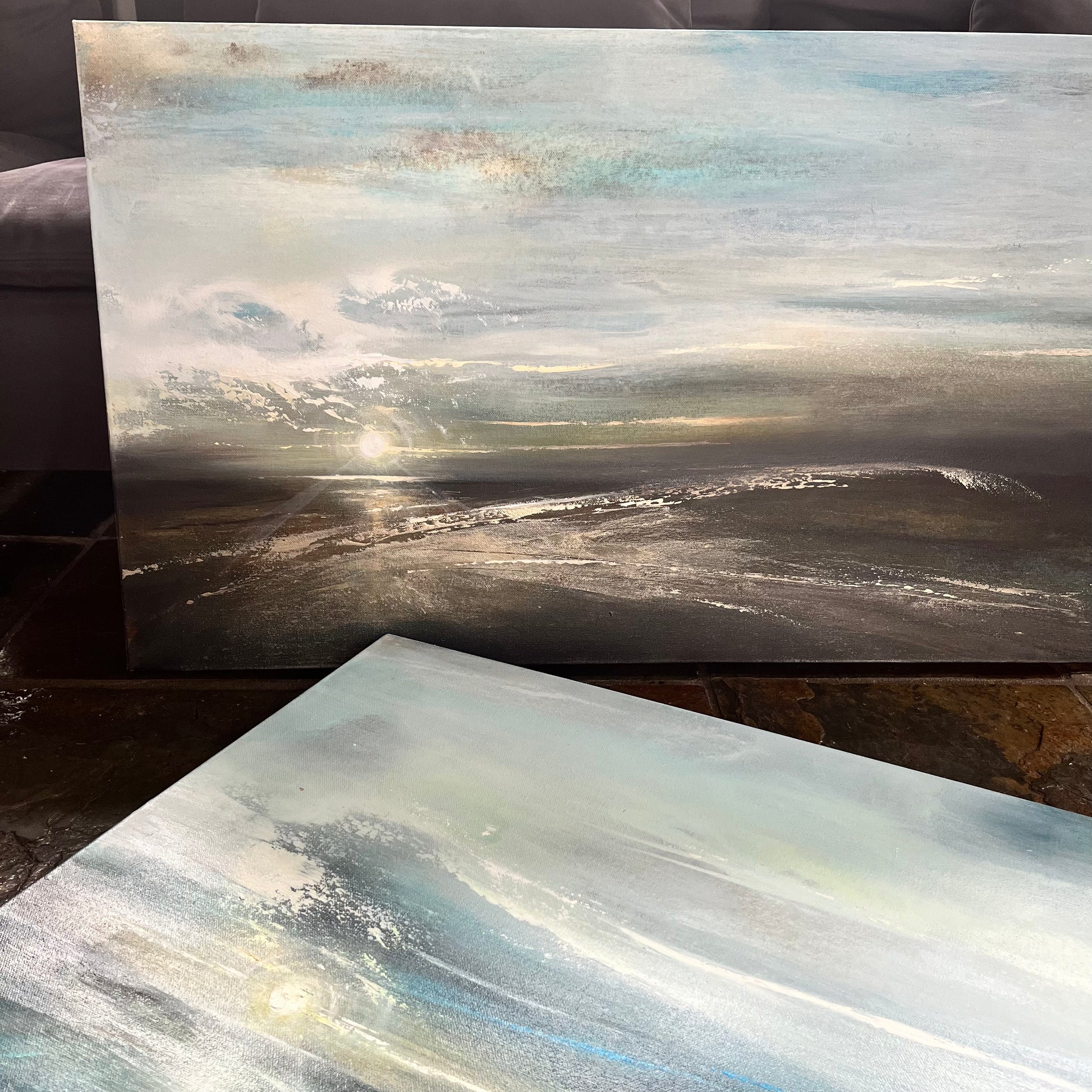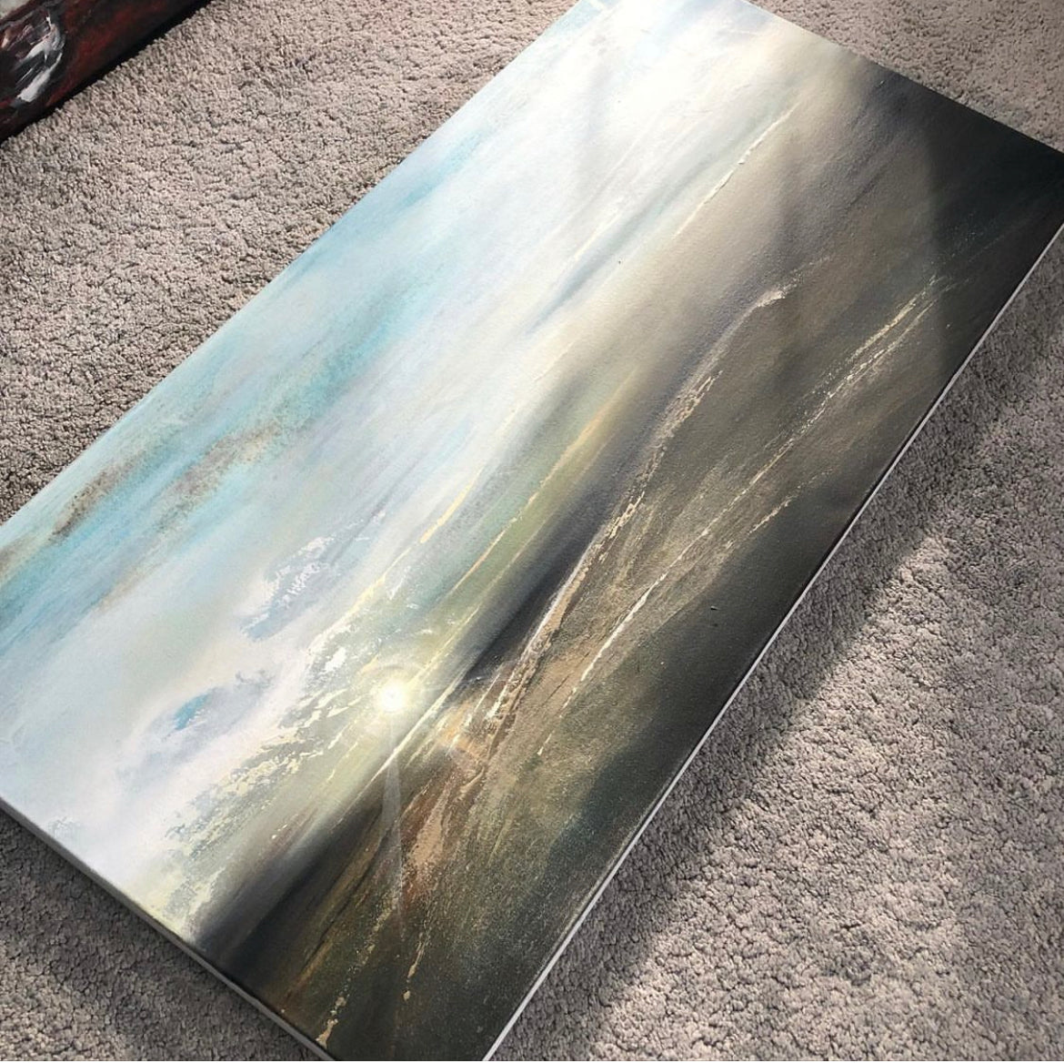 ‘Breakthrough’ is undoubtedly a firm favourite commission. Sunsets, adored universally, captivate with their beauty, especially during golden hour, my favourite time of day. This painting captures that serene moment through layers of translucent acrylics meticulously built up over time. The result is an aesthetic that mirrors the awe-inspiring beauty of a sunset. Each layer adds depth and warmth, creating a mesmerizing effect that resonates with viewers. ‘Breakthrough’ embodies the tranquility and splendor of nature’s daily spectacle.