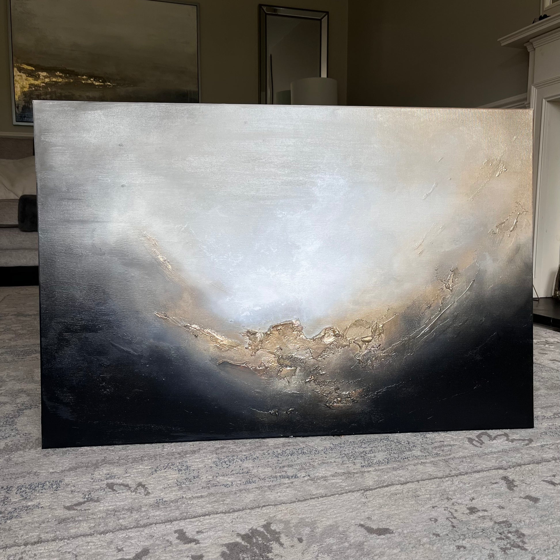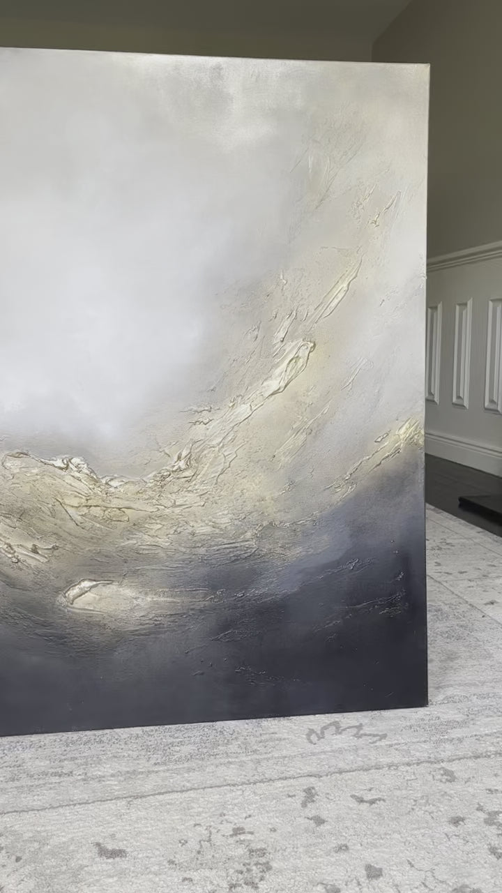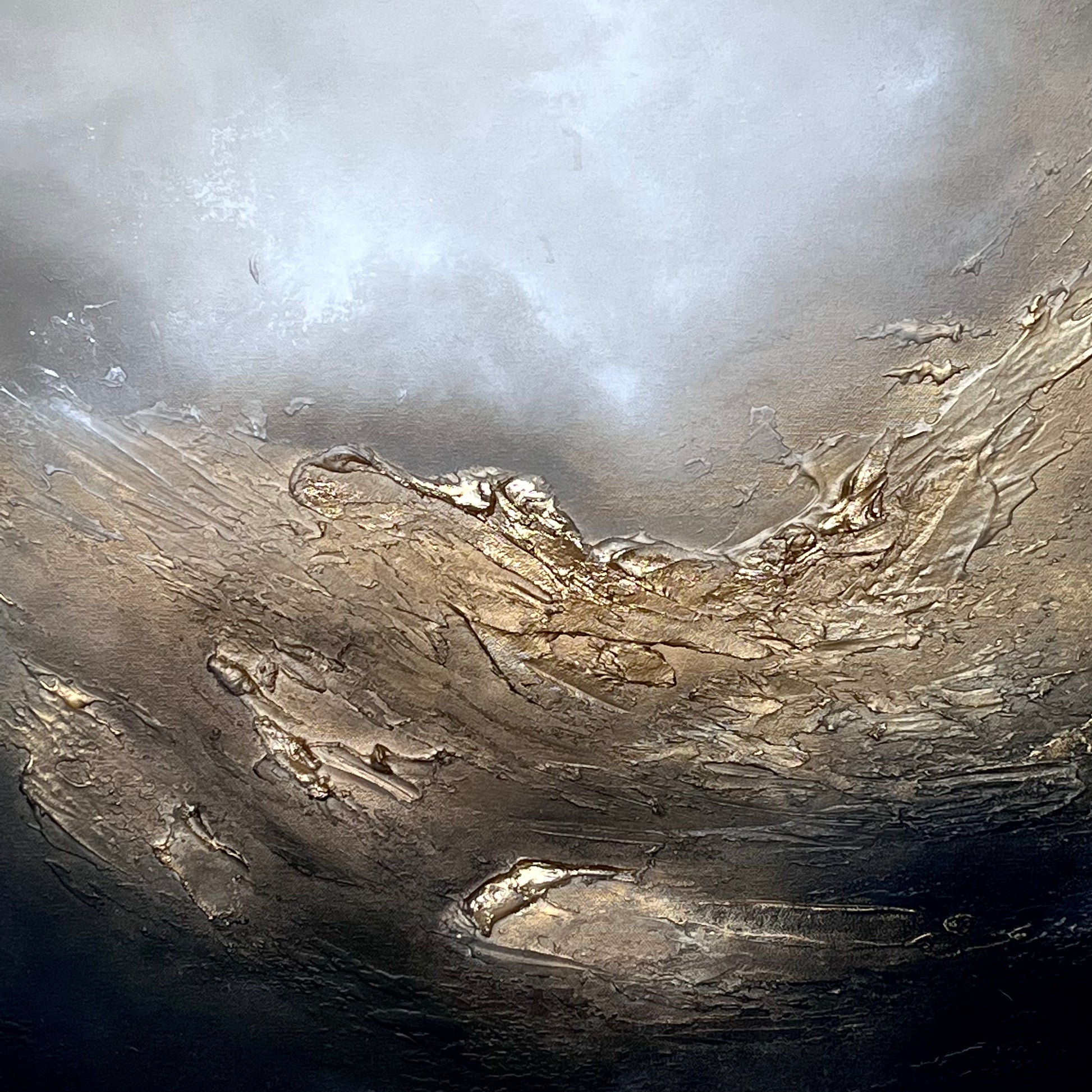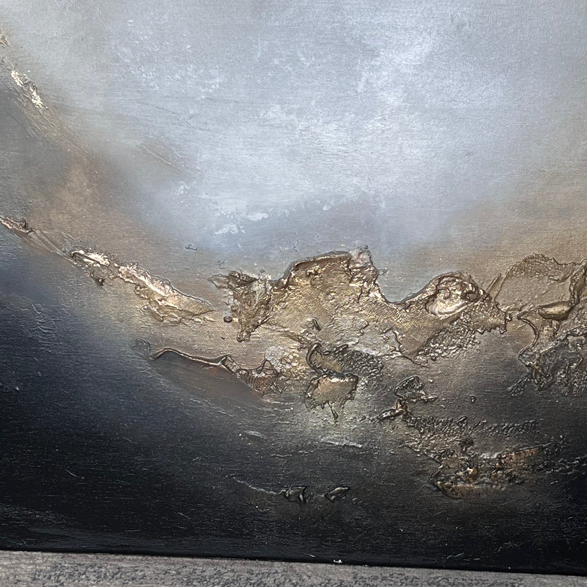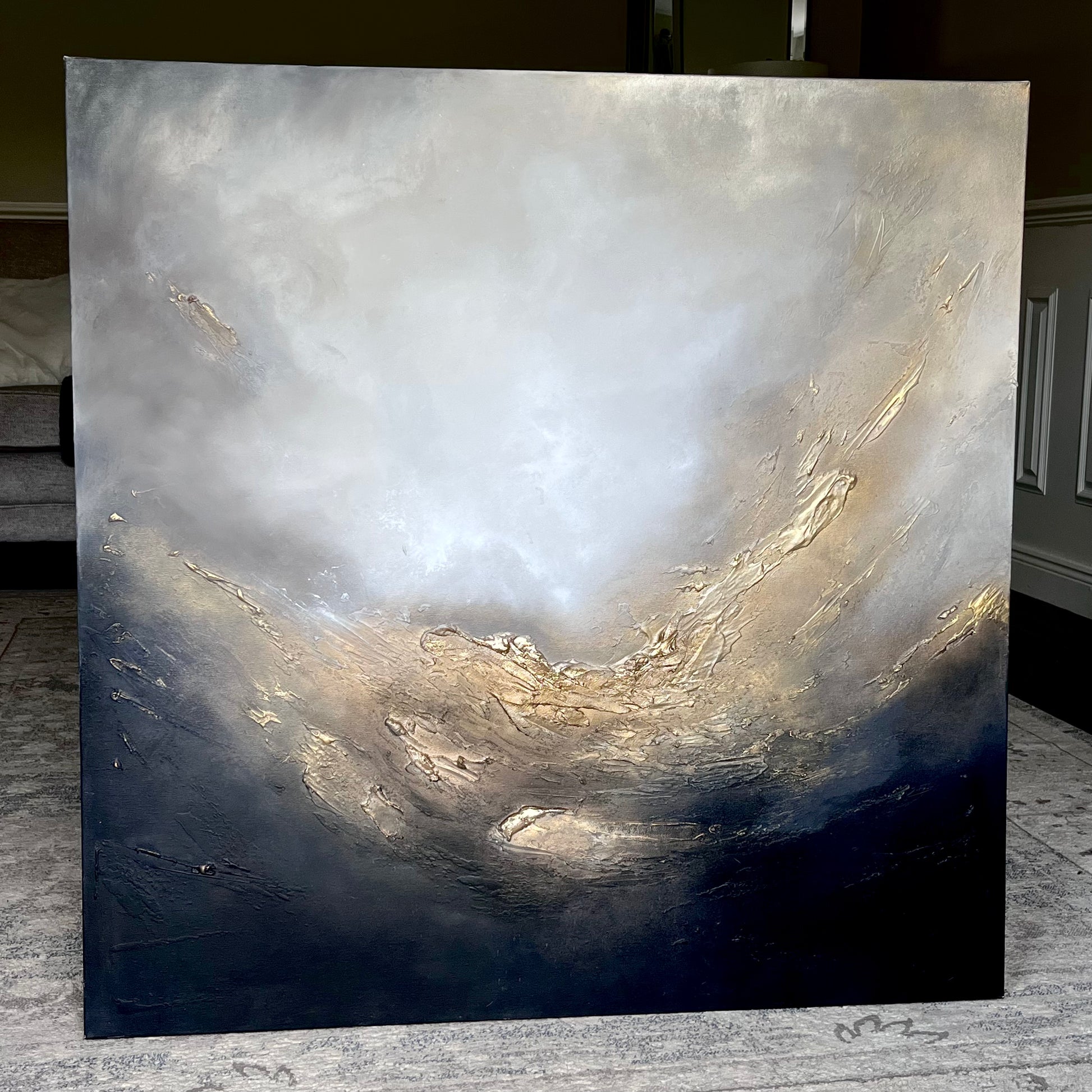 ‘Mad World’ is a mixed media heavily textured piece with neutral, gold, paynes grey and lots of dramarama. This is definitely not a wallflower piece however it still manages to be quite calming and when the light hits the gold leaf…..gorge.