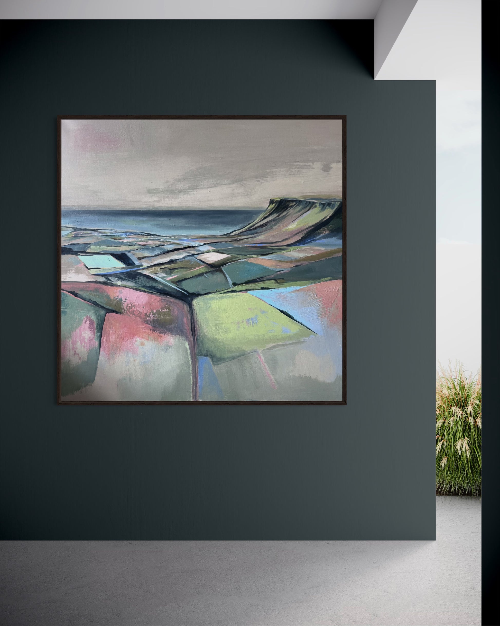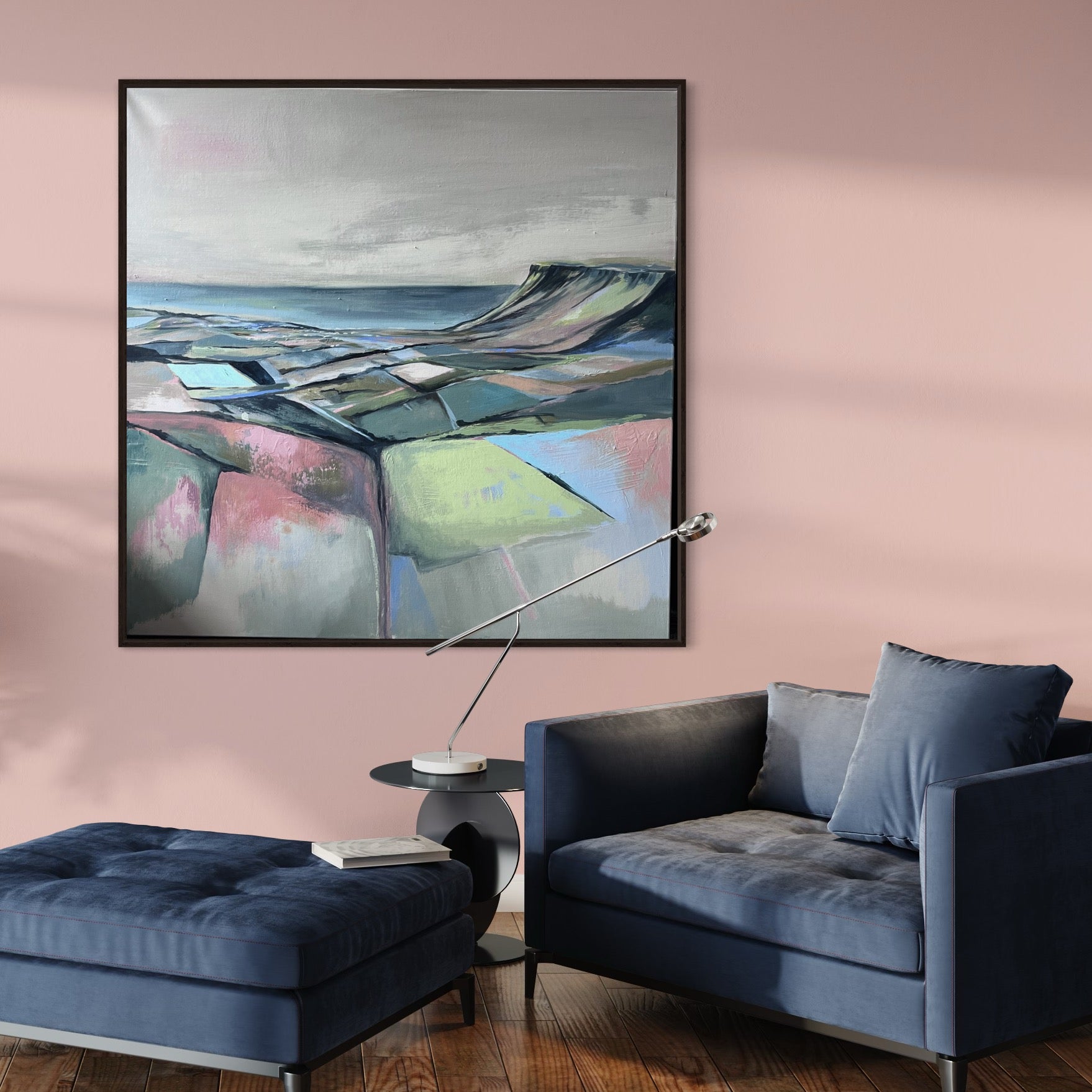 This stunning painting captures the picturesque beauty of the Antrim hills in Cushendun. I've used a combination of acrylic paints in shades of green, blue, pink, and yellow to create the patchwork beauty of the rolling hills in Antrim effect. The 1m x 1m artwork features subtle texture from layers of acrylic, adding depth and dimension to the scene. The fun colours and intricate details bring the landscape to life, inviting viewers to immerse themselves in the natural beauty of the Antrim hills.